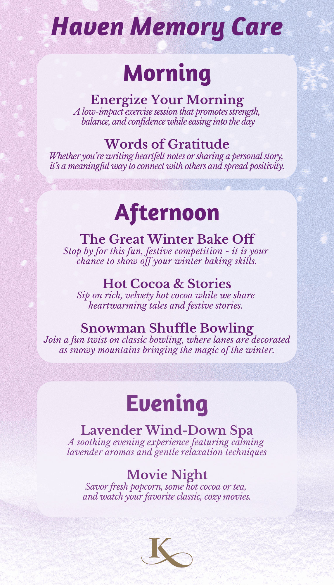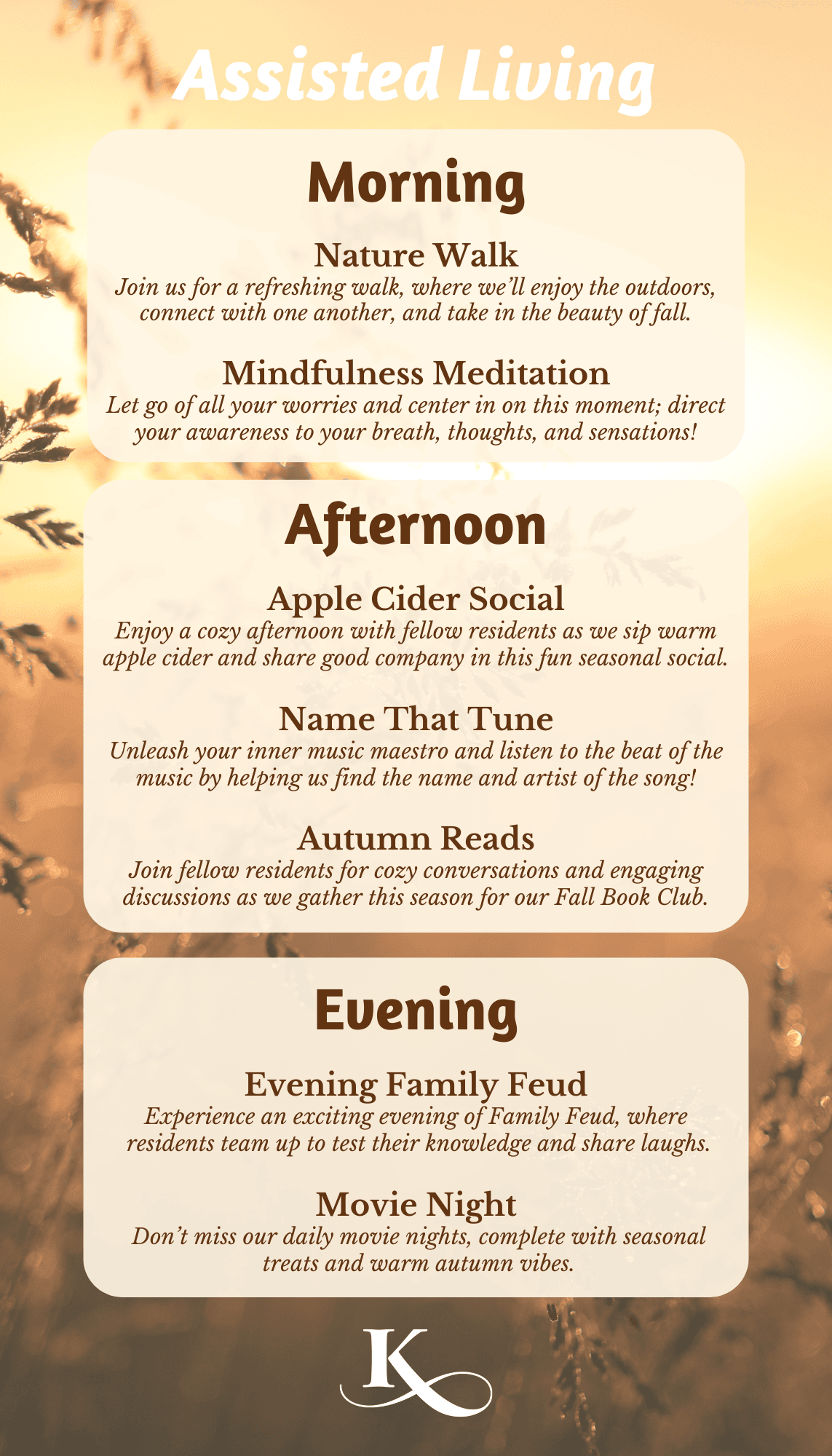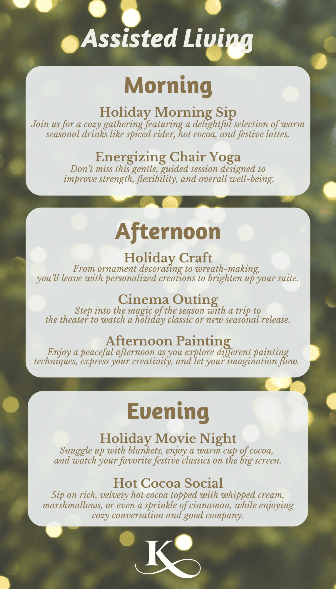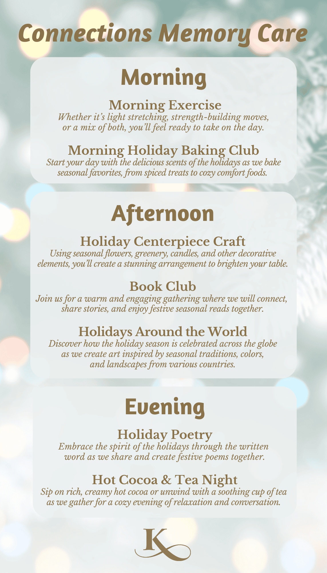 Activities and friendships have been shown to reduce stress, preserve wellness, keep the mind sharp and increase feelings of worth, especially for seniors. So, we are always searching for new ways to stimulate the mind, strengthen the body, nourish the spirit.